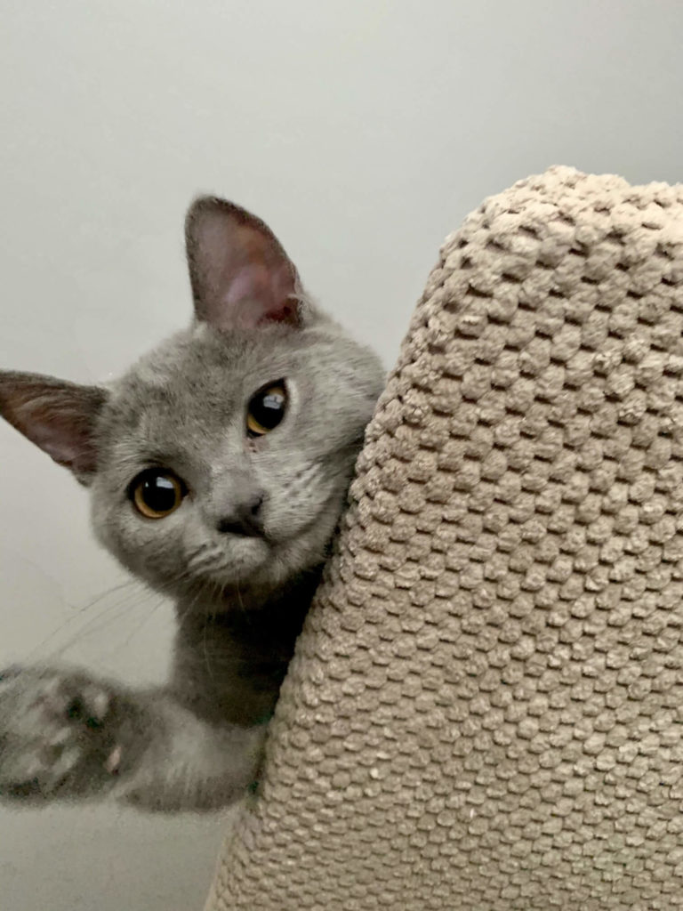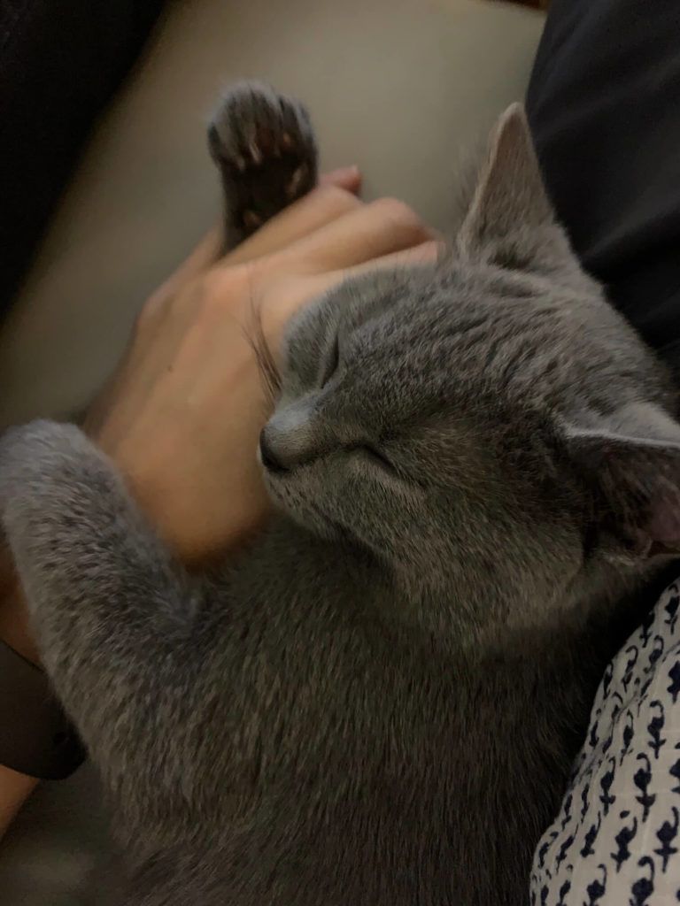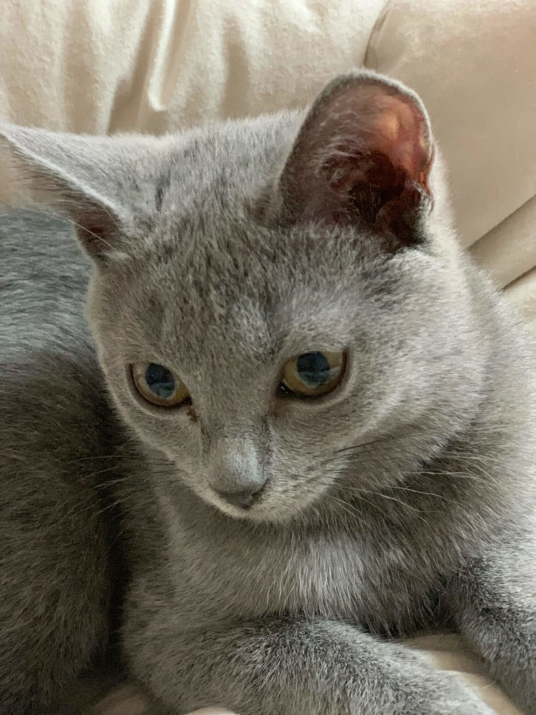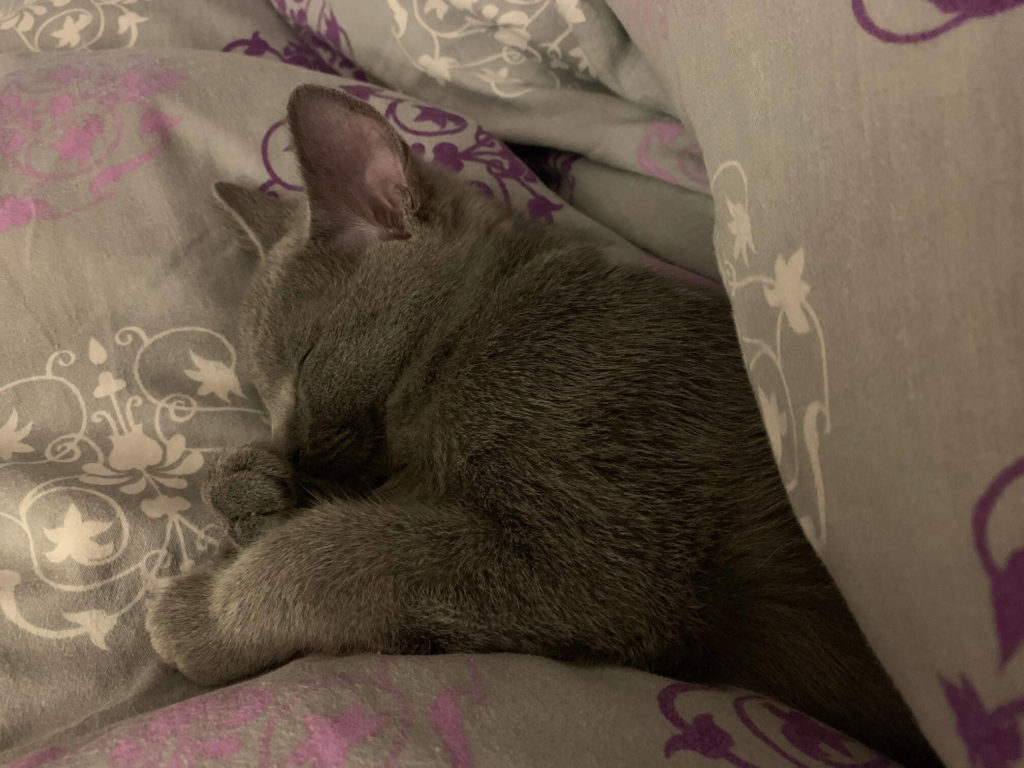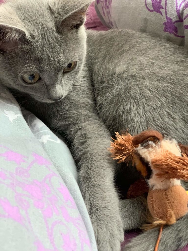 Wysyłam kilka zdjęć naszego malucha. Jest cudowny, taki inteligentny. Przynosi zabawki, którymi chce się bawić, sam ich najpierw szuka (np laser lub swoją ukochaną myszkę). Karol je, pije, korzysta z kuwety – tu w ogóle nie było problemu. Ufa ludziom i naturalne dla niego jest ze robimy wszystko z nim, inaczej się stanowczo przypomina. Tak wiec chodzi ze mną robić kawę, gotuje, sprząta, robi lekcje (lubi zeszyty) i oczywiście śpi z nami. A do tego jest radosnym, szczęśliwym i szalonym kotkiem. Nasz dom jest teraz zupełnie innym domem Dziękuję!